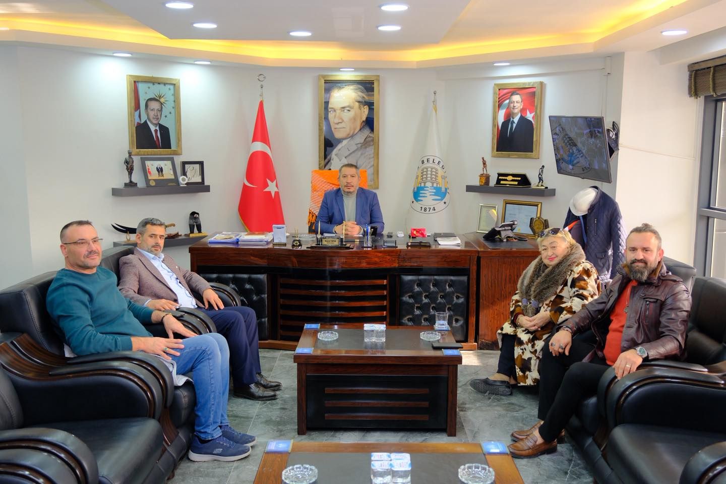 Ünlü oyuncu Gülnihal Demir, Haydarlı Belediye Başkanımız Süleyman Çetinkaya, Tatarlı Belediye Başkanımız Musa Kayer, Zayka Yapım kurucusu ve senaristi Zafer Kaya ile Başmakçı ilçemiz Esnaflarından Ramazan Kök, Dinar Belediye Başkanımız Veysel Topçu’yu makamında ziyaret etti.
