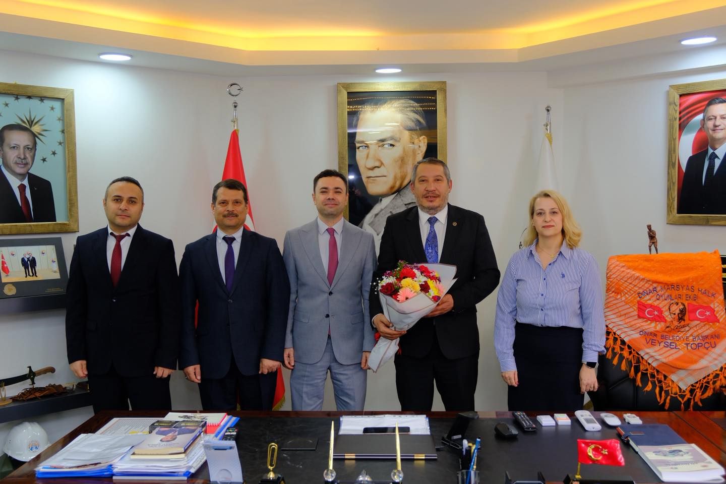 37. Vergi Haftası etkinlikleri kapsamında, Dinar Vergi Dairesi Müdürümüz Adem Göbekli, Vergi Dairesi Müdür Yardımcımız Cemal Torun ile vergi dairesi personellerimiz Melek Gürbüz ve Ayhan Alkiraz, Dinar Belediye Başkanımız Veysel Topçu’yu makamında ziyaret etti.