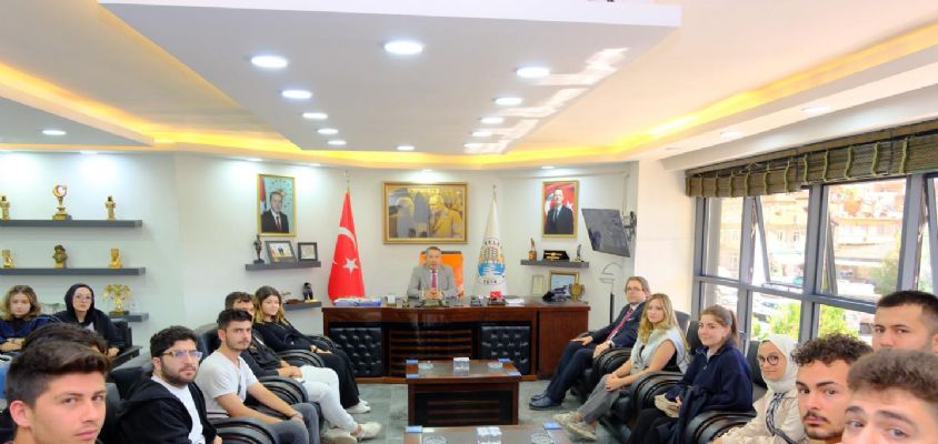 Dinar Uygulamalı Bilimler Yüksekokulu Endüstriyel Tasarım Bölümü öğrencilerimiz, İlçe Müftümüz Ahmet Kervancıoğlu ile birlikte Belediye Başkanımız Sayın Veysel Topçu’yu makamında ziyaret etti.