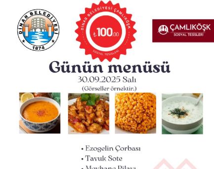 Çamlıköşk Sosyal Tesislerinde Günün Menüsü