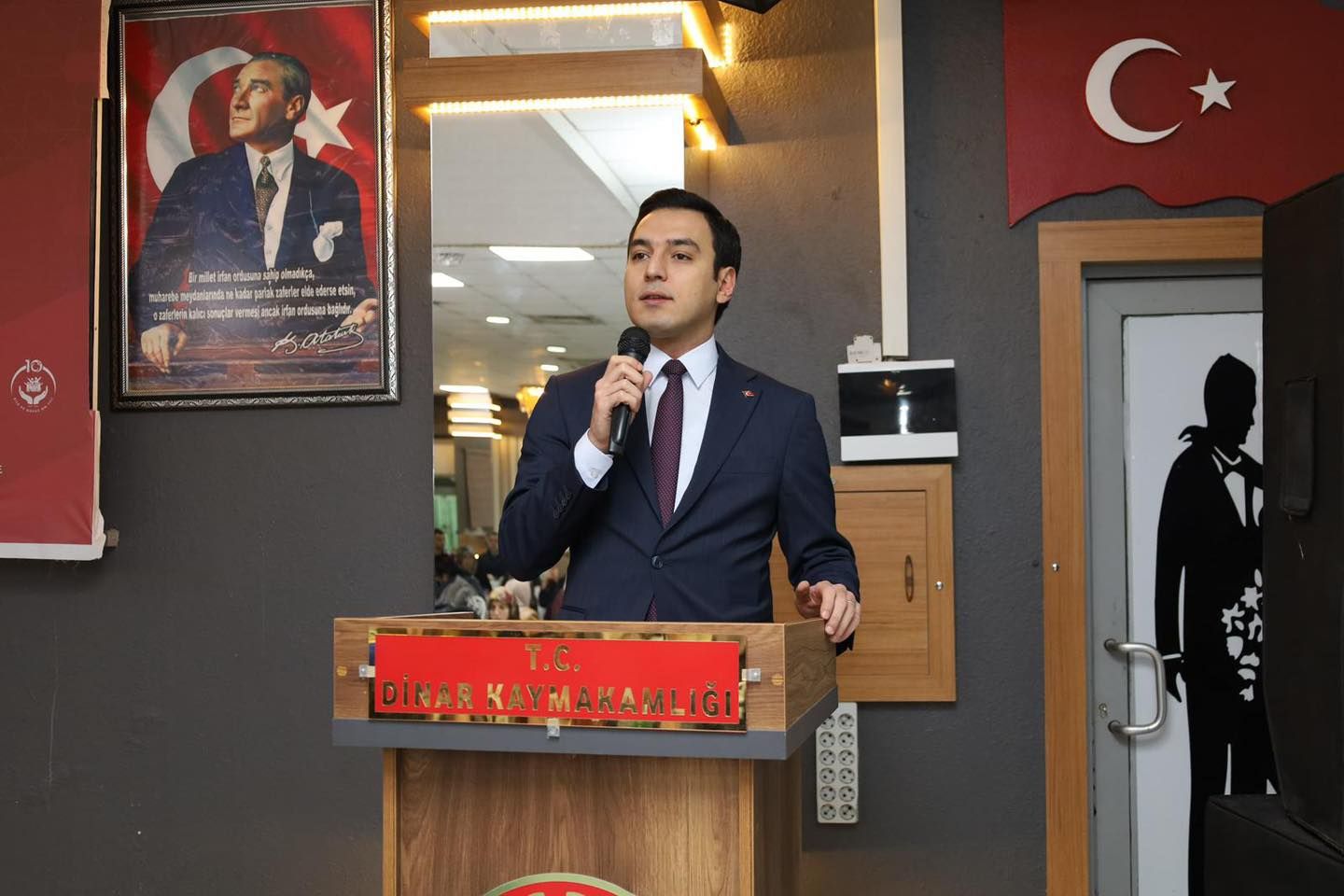 Dinar Kaymakamlığı Tarafından Düzenlenen anlamlı programa Dinar Kaymakamımız Hasan Uğuz, Dinar Belediye Başkanımız Veysel Topçu, Cumhuriyet Başsavcımız Emre Vurmaz ve ilçe protokolü katıldı.