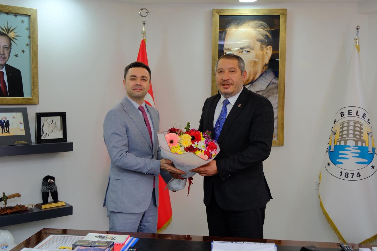 37. Vergi Haftası etkinlikleri kapsamında, Dinar Vergi Dairesi Müdürümüz Adem Göbekli, Vergi Dairesi Müdür Yardımcımız Cemal Torun ile vergi dairesi personellerimiz Melek Gürbüz ve Ayhan Alkiraz, Dinar Belediye Başkanımız Veysel Topçu’yu makamında ziyaret etti.