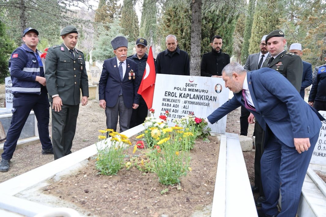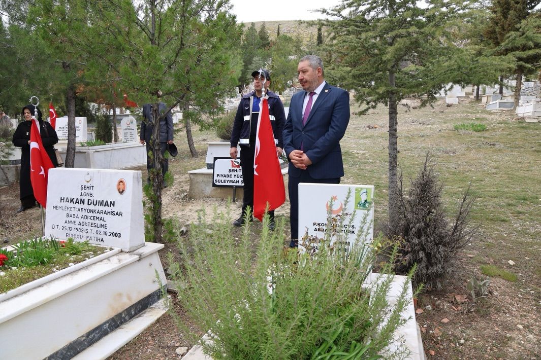 Anma programı, Dinar Asri Mezarlığı’nda son buldu. Şehit kabirlerine çiçekler bırakılarak dualar edildi, aziz şehitlerimiz rahmet ve minnetle anıldı.