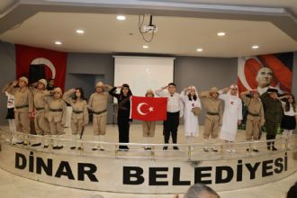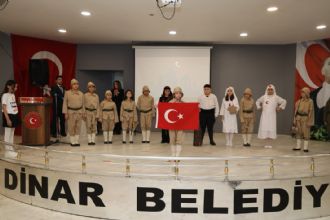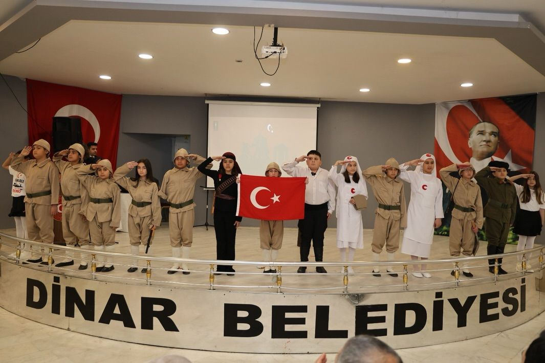 Cumhuriyet Meydanı’ndaki törenin ardından anma programı, Dinar Belediyesi Kültür Salonu’nda devam etti. Programda, Dinar Şakir Ünver İlkokulu öğrencileri tarafından hazırlanan şiirler, tiyatro gösterileri ve çeşitli etkinlikler katılımcılar tarafından ilgiyle takip edildi. Program kapsamında dereceye giren öğrencilere hediyeleri; Kaymakam Hasan Uğuz, Garnizon Komutanı Jandarma Üsteğmen Kürşat Bozkurt ve Belediye Başkanımız Veysel Topçu tarafından takdim edildi.