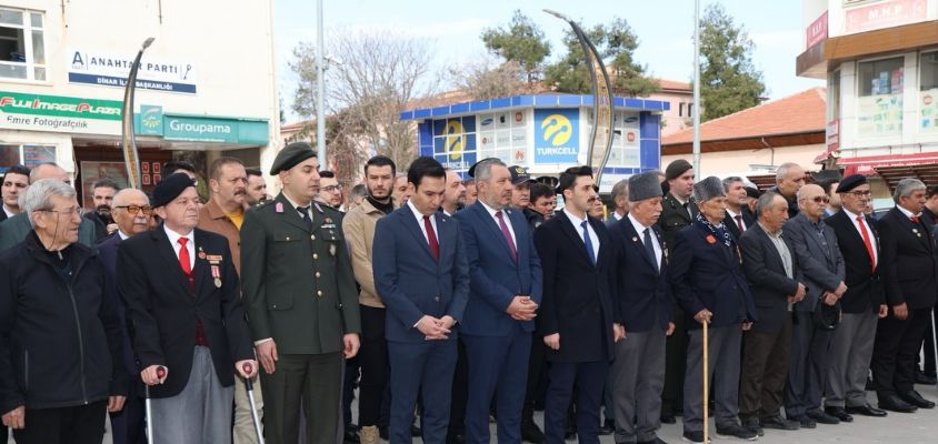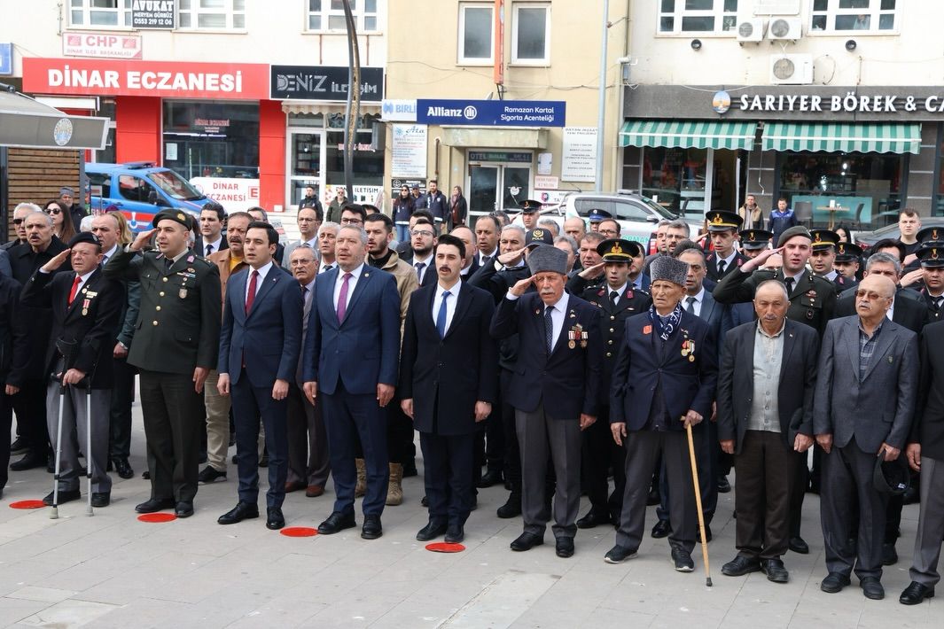 18 Mart Çanakkale Zaferi ve Şehitleri Anma Günü kapsamında Dinar’da düzenlenen program, Cumhuriyet Meydanı’nda gerçekleştirilen çelenk sunma töreni ile başladı.