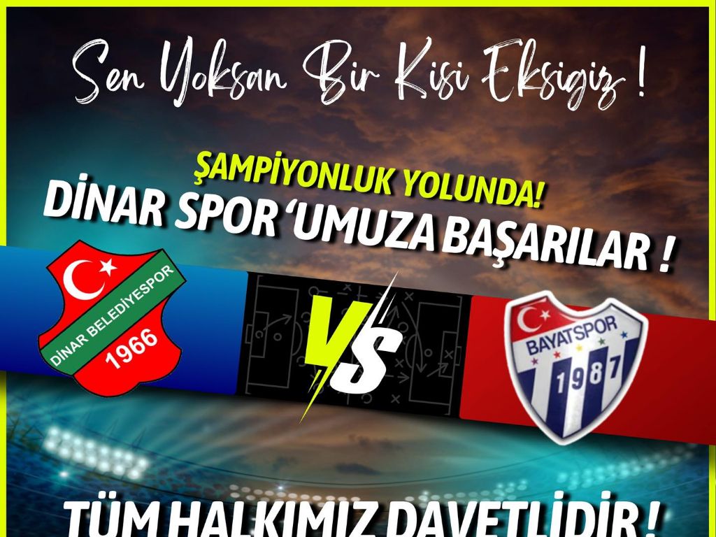 Tüm Dinar Belediye Spor taraftarlarını, şampiyonluk yolunda takımlarına destek vermek için Sandıklı’ya davet ediyoruz!
