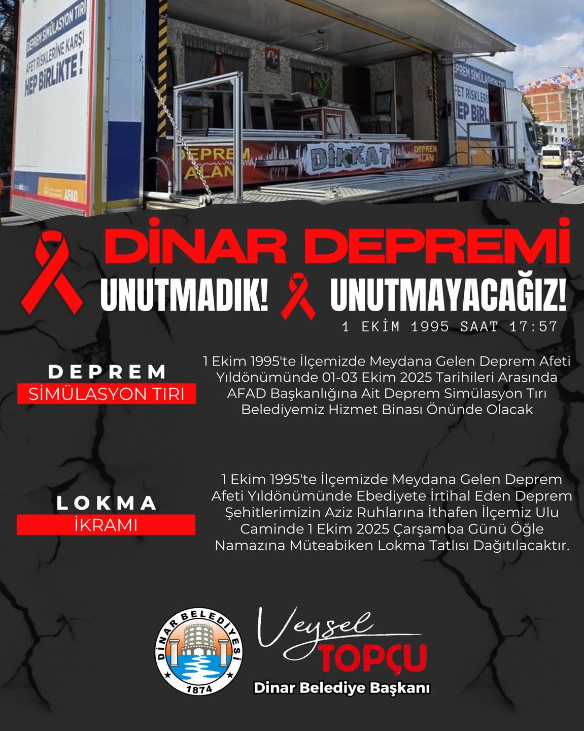 Dinar’da Yaşanan Büyük Deprem Felaketinin Üzerinden 30 Yıl Geçti. O Gün Yaşadığımız Acıyı Unutmadık, Unutmayacağız. Depremde Hayatını Kaybeden Vatandaşlarımızı Rahmetle Anıyor, Yakınlarına Başsağlığı Diliyoruz.!