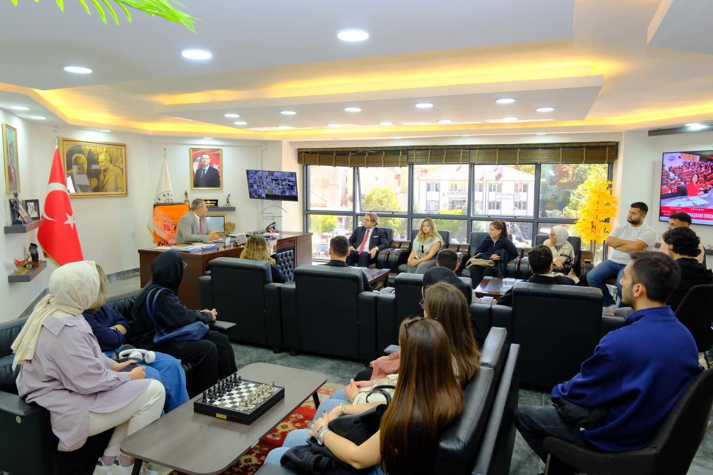 Dinar Uygulamalı Bilimler Yüksekokulu Endüstriyel Tasarım Bölümü öğrencilerimiz, İlçe Müftümüz Ahmet Kervancıoğlu ile birlikte Belediye Başkanımız Sayın Veysel Topçu’yu makamında ziyaret etti.
